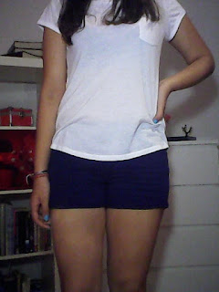 Depois eu fui à Bershka na esperança de encontrar uma t-shirt mais básica e por algum motivo que tivesse um bolsinho na zona do peito. Não me perguntei o porquê, eu apenas queria uma blusa dentro deste género. Eu devo ter visto no tumblr ou num outro haul e gostei do estilo e andei à caça de uma. E então encontrei esta na Bershka a 6,99€. Ela é toda branca e tem o tal bolsinho na zona do peito.